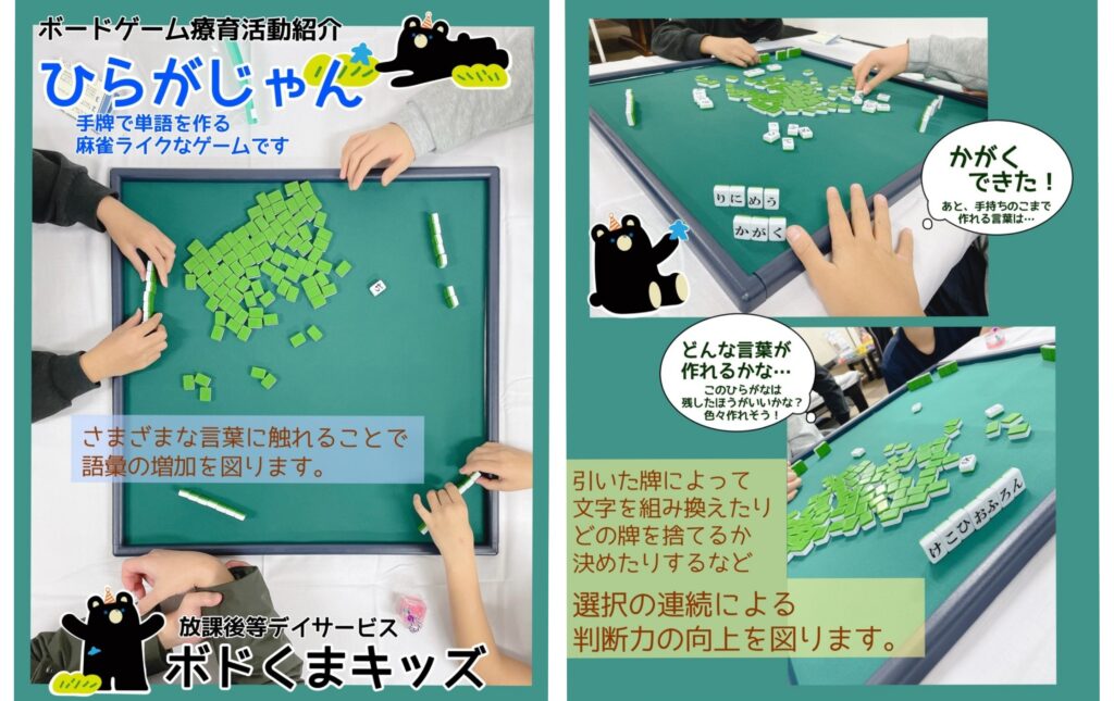 今回は、ボードゲーム療育の活動として「ひらがじゃん」を行いました!