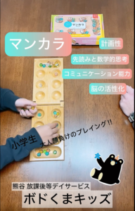 ボードゲーム療育の活動の中で、思考力を育てるゲーム「マンカラ」に取り組みました。石(コマ)をどこから取って動かすかを考えながら進めるこのゲームは、先を読む力や数の感覚、計画性を楽しく身につけることができます。 「ここを先 […]